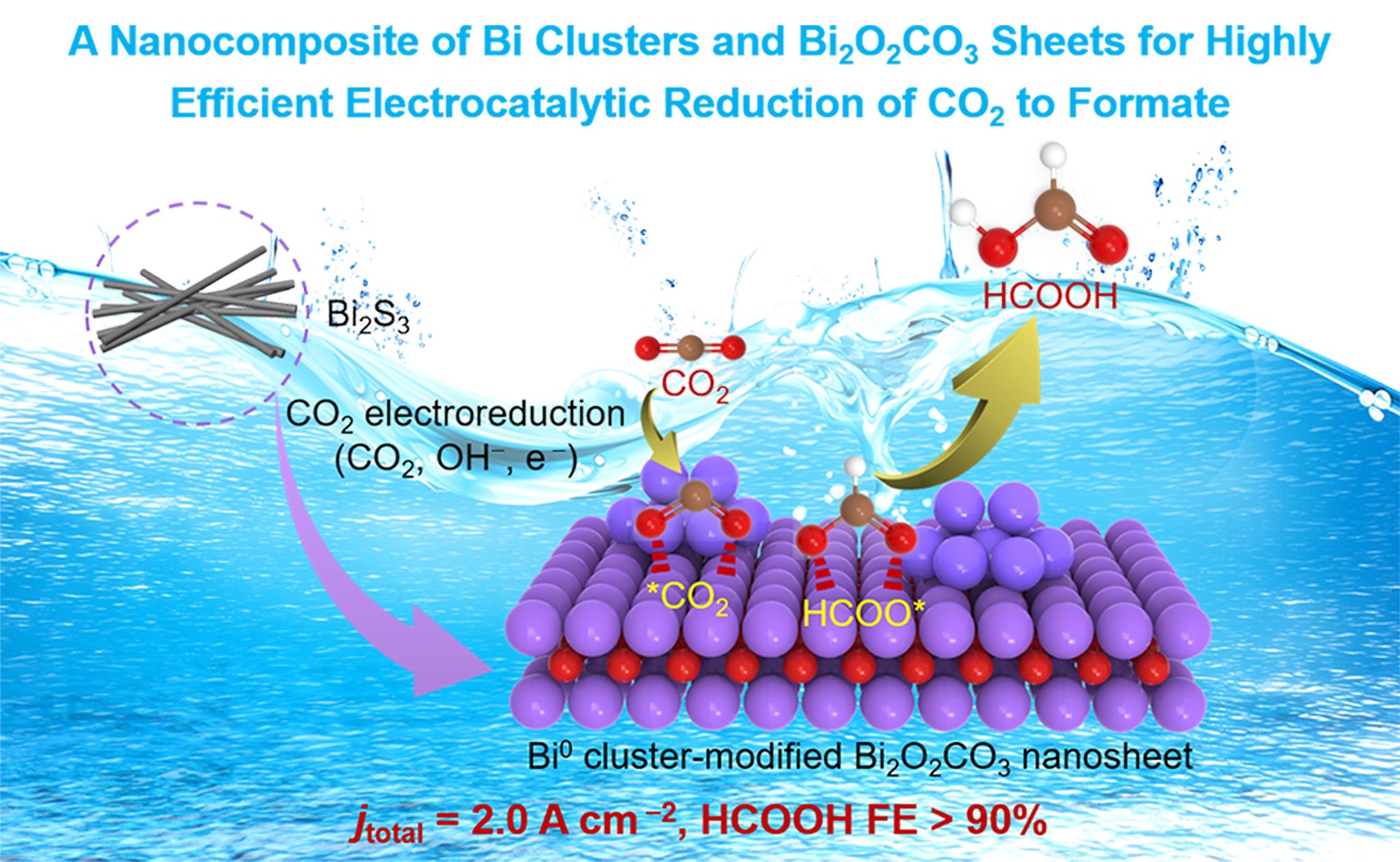 Our article “A Nanocomposite of Bi Clusters and Bi2O2CO3 Sheets for Highly Efficient Electrocatalytic Reduction of CO2 to Formate” has been published in Angew. Chem. Int. Ed.