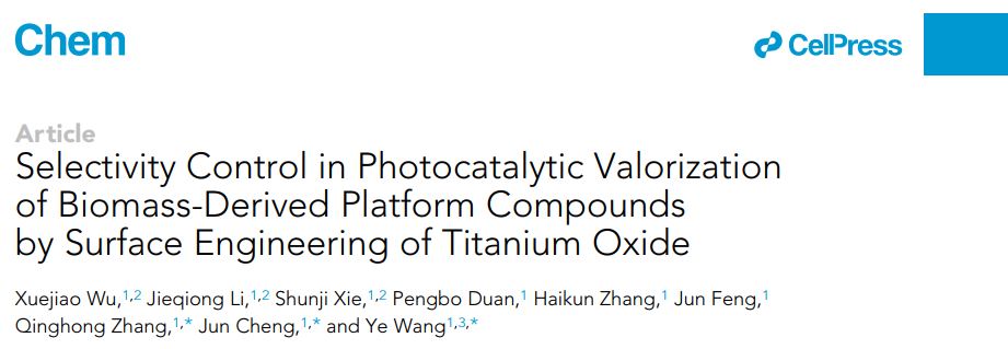 Our article on“Selectivity control in photocatalytic valorization of biomass-derived platform compounds by surface engineering of titanium oxide”has been published inChem (Chem2020, DOI:10.1016/j.chempr.2020.08.014).